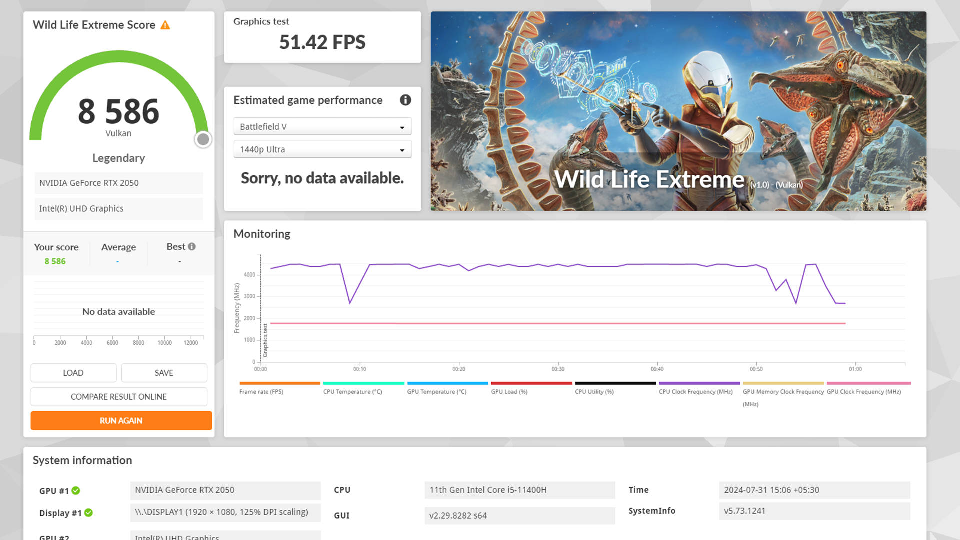Speaking of which, I also tested a bunch of titles on both Ultra presets and a balance of High and Medium settings for a more realistic gaming experience. Most AAA titles can easily be enjoyed in medium-high settings with a 1080p resolution. Some games, however, require you to dial down the settings a bit. For instance, with Cyberpunk 2077, the laptop needs to run on low and medium settings to hit a stable 60fps frame rate. Titles like Forza Horizon 5 and Hogwarts Legacy could easily breach the 60 fps mark on a combination of medium and high settings, with occasional drops here and there. As for competitive gaming, Apex Legends easily averages over 113 fps on High settings. Though, you will have to fine-tune a couple of settings to hit the 144fps spot which is in line with the display’s peak refresh rate.