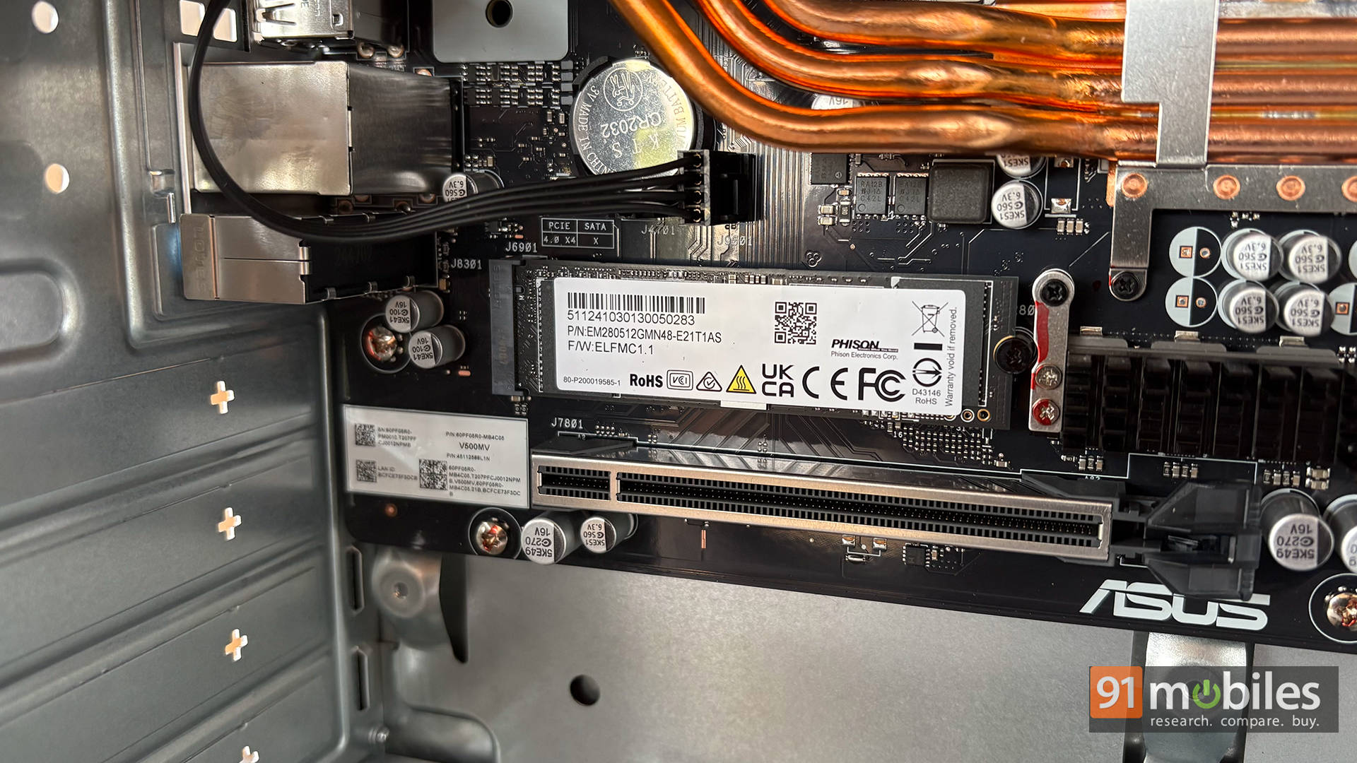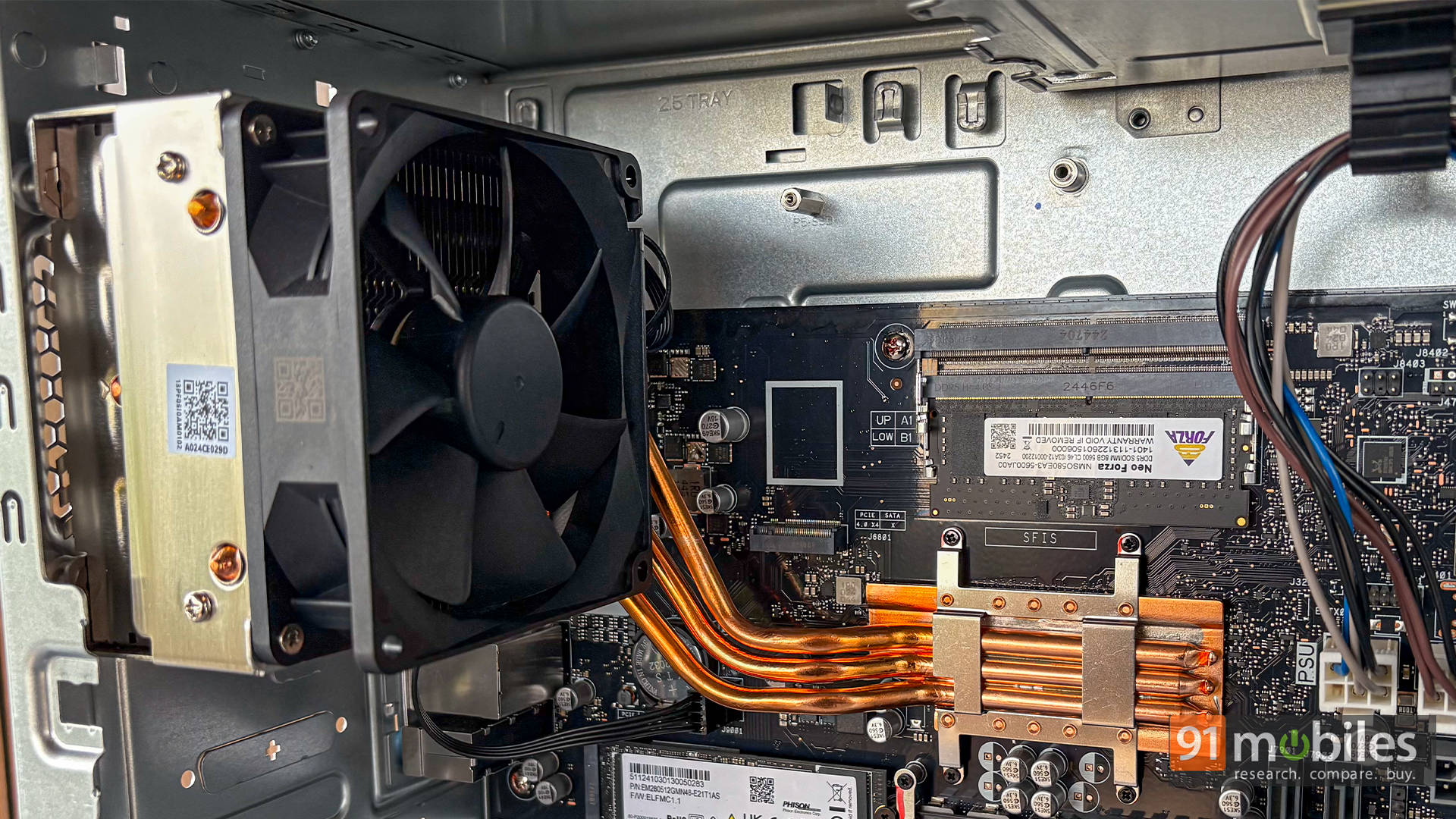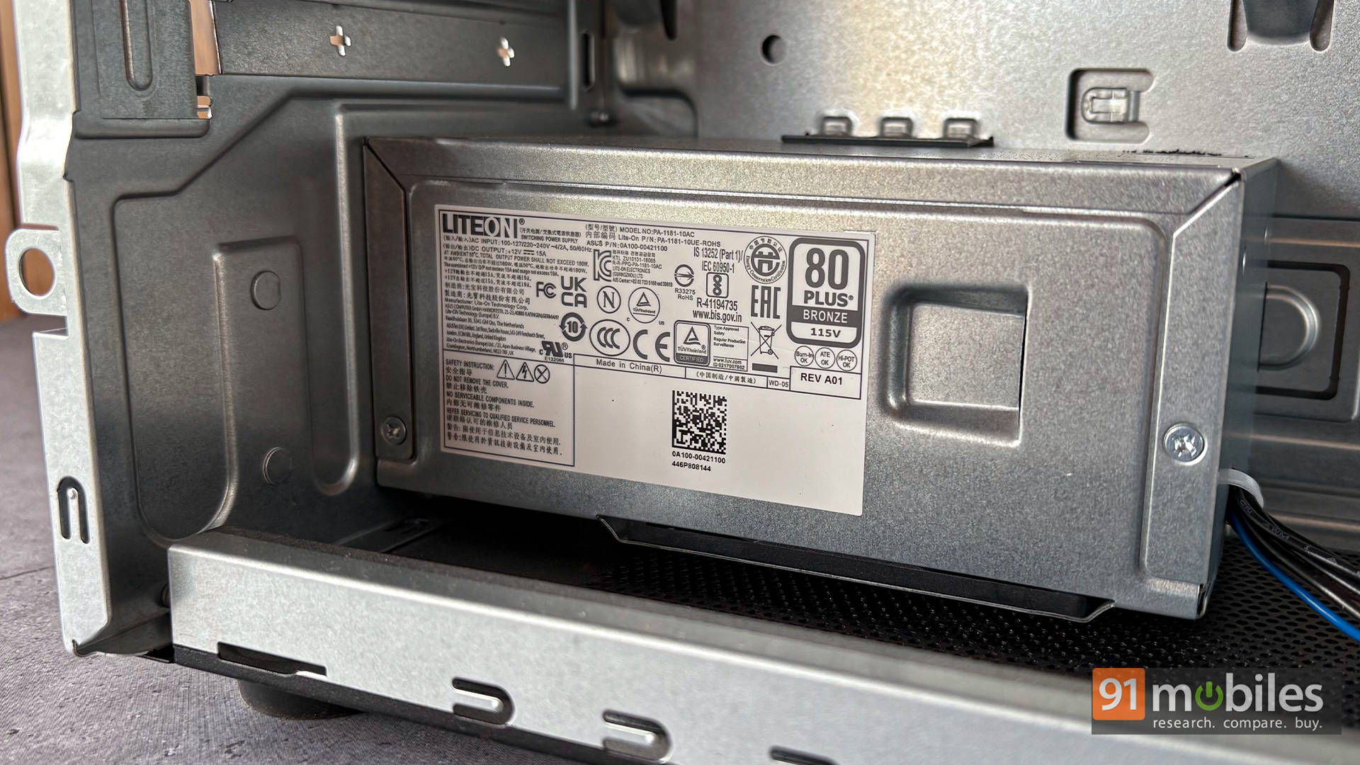 The motherboard also sports a PCIe 4.0 x16 slot. However, it’s limited to operating at just PCIe 4.0 x8. So, in theory, if you want to, you can install a dedicated GPU like the AMD Radeon RX 7600 XT or the Intel Arc B580 (provided you can find one in India). However, in practice, there’s a bigger issue: the bundled 180W PSU simply won’t be enough. You’d need to swap it with a 450W PSU to install a proper GPU in this thing. But at that point, it defeats the purpose of buying a compact prebuilt system.