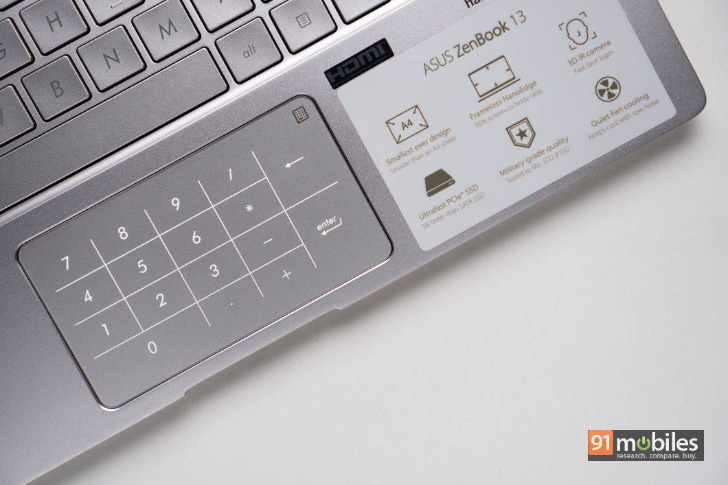 The ZenBook 13’s compact chassis comes at a cost as buyers opting for the device will have to settle for a tightly-packed keyboard and a relatively small touchpad. For what it’s worth, I quickly got acclimated to the laptop’s keyboard and was able to type at my usual speed without making many typos. In fact, barring the right shift key which is abnormally small, I didn’t face any issues with the keyboard during my stint with the machine.