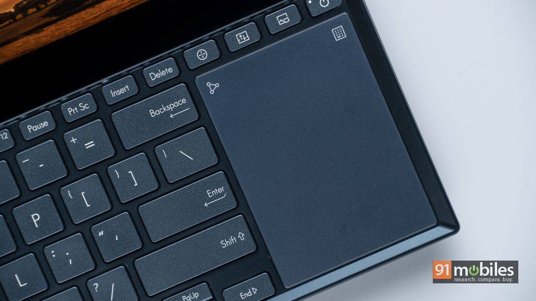 Much like the company’s Zephyrus line of laptops, the ASUS ZenBook Pro Duo features an ill-placed keyboard and trackpad setup. You see, in order to make room for the secondary screen, the keyboard has been pushed downwards and correspondingly, the trackpad has been moved towards the right-hand side. Thankfully, the ZenBook Pro Duo does ship with a separate palm rest which ensured I could type comfortably on the machine. What’s more, the keys are adequately tactile and well-spaced too, ensuring your fingers won’t be fighting for space. My only qualm with the bundled palm rest is that it doesn’t latch on to the base of the laptop magnetically and therefore, slips on the desk from time to time.