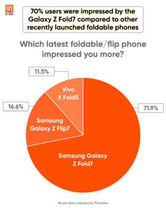 These improvements have not gone unnoticed by potential buyers. In a recent poll conducted among the 91mobiles Tech Tribe members, 72.5 percent of respondents said the Galaxy Z Fold7 was the most impressive foldable phone launched recently. The book-style Z Fold7 also emerged as the preferred form factor for 75.5 percent of those polled, primarily because of the larger screen and better productivity use cases.
