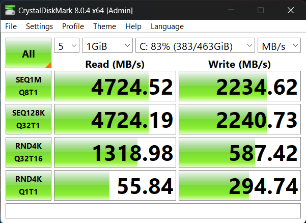 The 500GB PCIe Gen 4 M.2 SSD on the laptop offered up to 4,800Mbps read speeds and 2,300Mbps write speeds as per testing done on CrystalDiskMark. There is a secondary PCIe Gen3x4 M.2 storage slot, which can be used for additional storage, especially if you have a large games library.