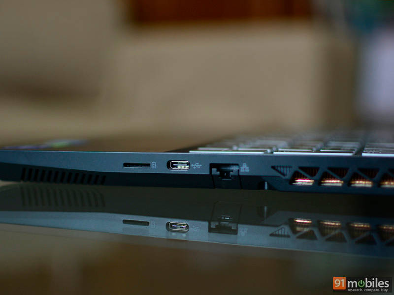 In terms of ports, the laptop comes with a USB 2.0 Type-A port, a USB 3.2 Gen 1 Type-A port, two USB 3.2 Gen 2 port Type C ports, a Mini DP 1.4, HDMI 2.1, dedicated audio and microphone jacks, an RJ-45 LAN port, a microSD card reader and a barrel style charging port. Notably, one of the USB Type-C ports is Thunderbolt 4 enabled if you opt for the higher-tier model with the RTX 3060 GPU.