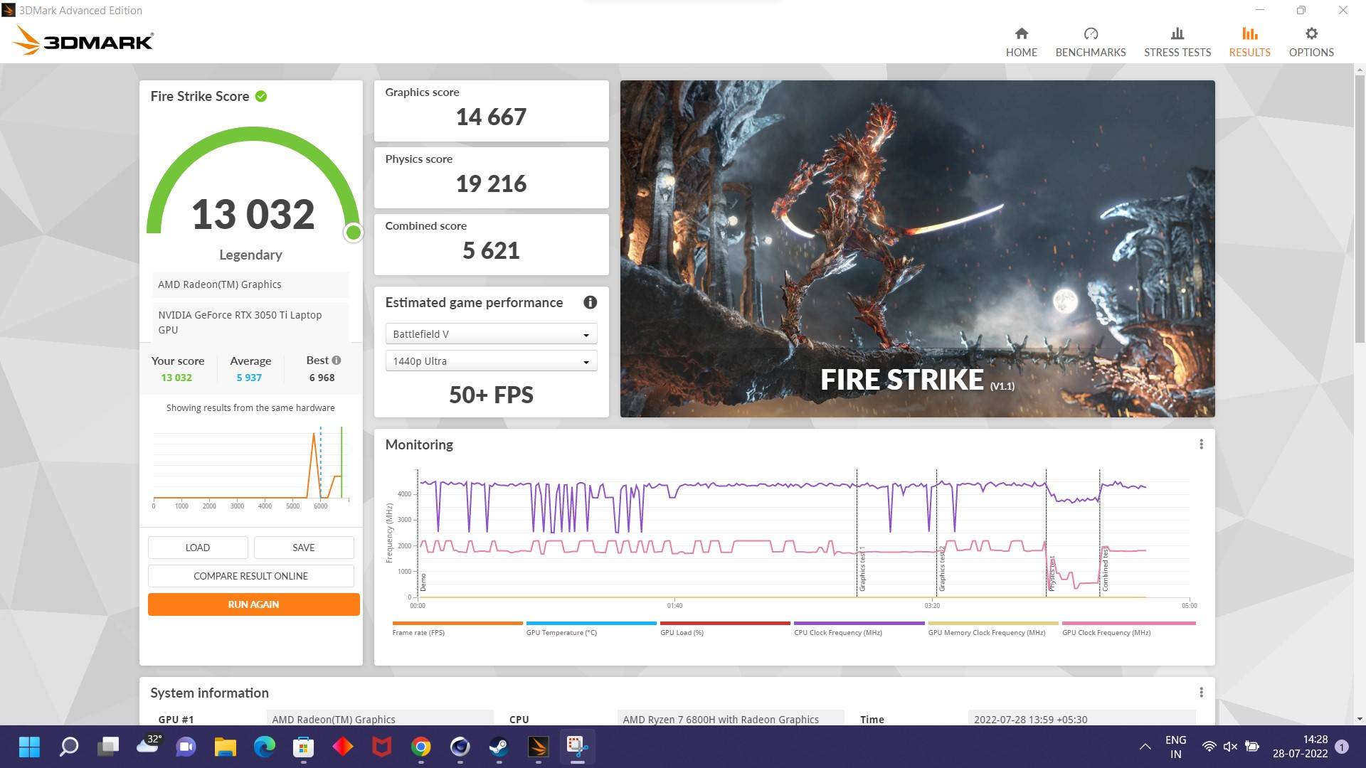 The rest of the hardware is pretty good too. The Ryzen 7 6800H is a very capable processor and it clearly shows. In Cinebench R23, the CPU managed to score 9875 points in multi-core and 1307 in single-core tests. This is similar to the performance of last year’s Intel model powered by the Core i7-11800H, but mind you, it sold for almost Rs 20,000 more than what you pay for this model. I would also recommend that you opt for 16GB of RAM, or at least upgrade in the future if you are looking for a more consistent multitasking experience, especially if you deal with a lot of Chrome tabs. For day-to-day tasks, I found the laptop to be quick and snappy. Windows boots up fast, apps and software load up quickly and it has enough power to handle simple computing tasks with ease.