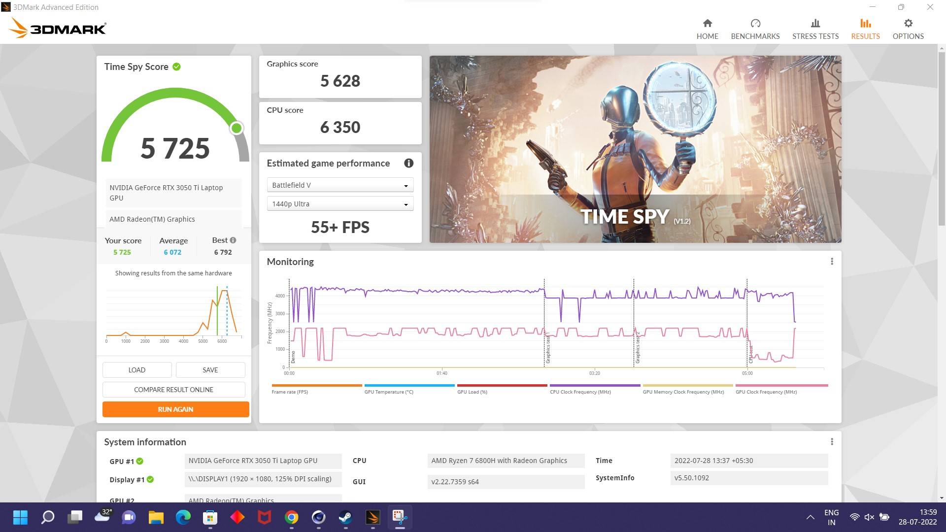 Graphics duties are handled by the Nvidia GeForce RTX 3050 Ti which is pretty decent for 1080p gaming. Sure, it doesn’t have the brawns and muscles for a good ray tracing experience, but it is a very capable GPU. High-end AAA titles require you to pull down the graphics settings to medium or low to hit the 60fps mark and as for competitive shooters, the hardware is sufficient and should meet your expectations. In my testing, I was able to get over 60fps at high settings on Star Wars: Jedi Fallen Order and about 53fps on Rise of the Tomb Raider.