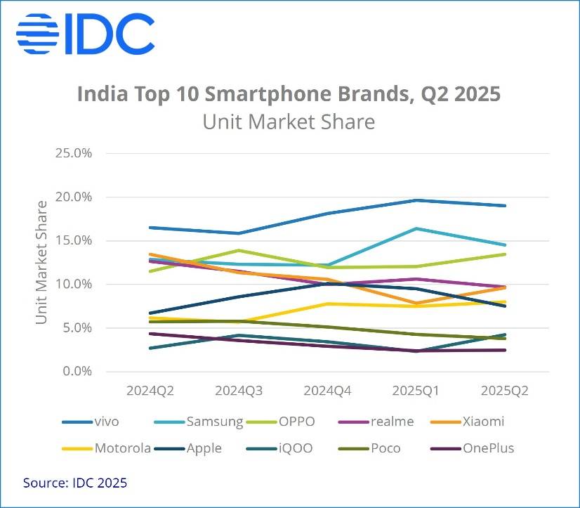 Apple has been highlighted in the IDC report with the iPhone 16 being the highest-shipped model across India in the first half of 2025, making up 4 per cent of the overall shipments. Apple also continued to maintain its growth with shipments growing 21.5 per cent YoY to 5.9 million units in the same period.