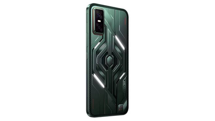 The GT 30 borrows a lot from the Pro model, especially its signature Cyber Mecha Design 2.0. It features gamer-focused aesthetics, including customisable white LED lights at the back, similar to the Blade White version of the GT 30 Pro. The Dark Flare variant of the Pro gets RGB lighting for a flashier look. These lights can be customised for incoming calls, notifications, alerts, and more. The GT 30 is shown in a dark green colour with four white LEDs. It sports a dual-camera setup with an LED flash in the top-left corner.