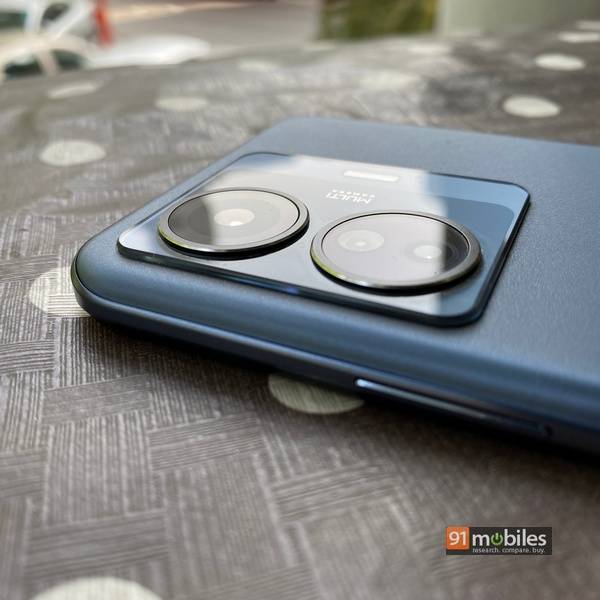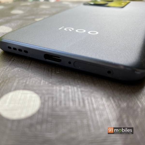 The iQOO Z6 Pro gets a smooth matte-finished plastic back with an anti-glare coating that has been quite prevalent on Realme and Xiaomi phones as of late. However, it isn’t particularly lightweight and I think it has to do with the massive vapour cooling chamber inside the phone. I have the Phantom Dusk variant which resembles a light shade of black with a glittering look that is emphasised by the matte finish. The rails on the edges are plastic but with a matching colour scheme that carries over to the volume rocker and power buttons. An easily distinguishing feature of the Z6 Pro is the massive camera rings that give the impression of two large sensors with superlative image-taking prowess.