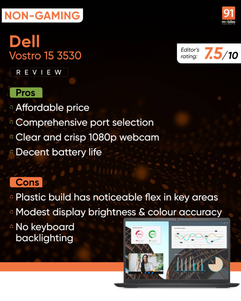 The Dell Vostro 15 3530 establishes itself as a reliable productivity laptop for budget-conscious users. With its 13th Gen Intel Core i3 processor, 8GB of RAM, and 512GB SSD, it performs well for routine tasks like web browsing, video streaming, and document editing. While its gaming capabilities are limited, it can handle casual titles like Valorant and League of Legends, provided users manage their expectations.
