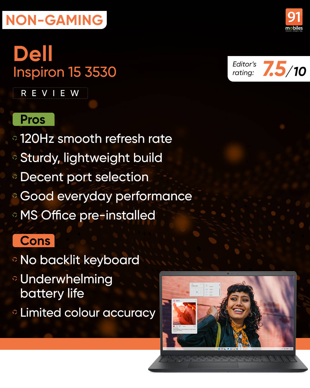 The Dell Inspiron 15 3530 is a good budget laptop for students and professionals who need a reliable device for basic productivity and web browsing. Its strong points include a sturdy build, a smooth 120Hz display, and decent connectivity options. However, the lack of a backlit keyboard, unimpressive battery life, and basic integrated graphics may be deal-breakers for some. Even so, I have to emphasise that the target audience will likely be pretty satisfied with the laptop’s offerings.