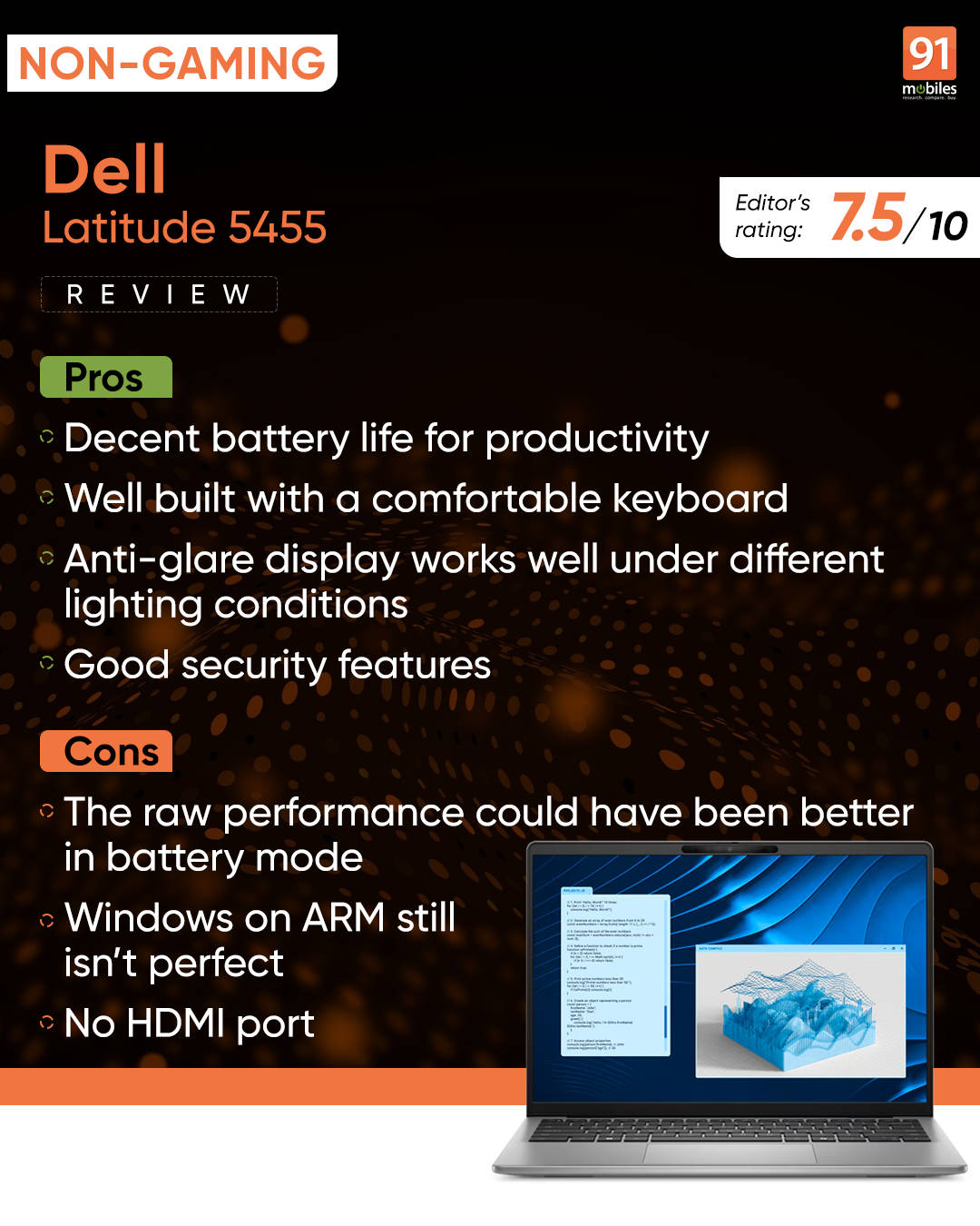If you are purely a business user and got this laptop from your employer, you shouldn’t have any real complaints. What the device has going for it is very good build quality, a very good keyboard for typing content, an anti-glare display that works well in different lighting conditions, decent overall performance, and a day-long battery life. It is also really lightweight and comfortable to carry/use for long durations. Where it falters is that Windows on ARM still has bugs to iron out, and that’s more of a Qualcomm-Microsoft thing to fix. However, there are laptops in a similar price range that offer better battery life, and my biggest gripe is the lack of an HDMI port. For an asking price of Rs 1,19,950 + taxes for the configuration I have, it is a tad steep, especially if you compare it with Dell’s own lineup as well as the competition’s “non-business” laptop lineup. Then again, they wouldn’t come with Dell’s security features such as Dell SafeID and Secure BIOS, which is a big factor for business users.