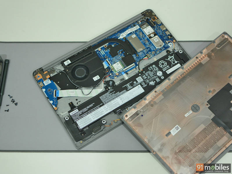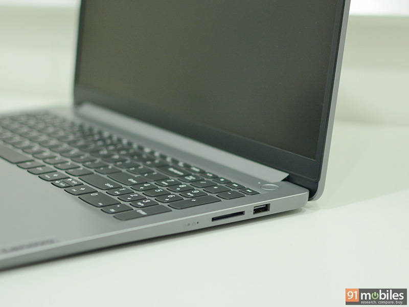 The display on the IdeaPad Slim 1 measures 15.6 inches offering a full HD (1,920 x 1,080) resolution. It is a TN type panel offering a mere 220 nits of peak brightness and 45 percent coverage of the NTSC colour gamut. It comes black plastic bezels and the 720p webcam sits on top with a physical shutter.