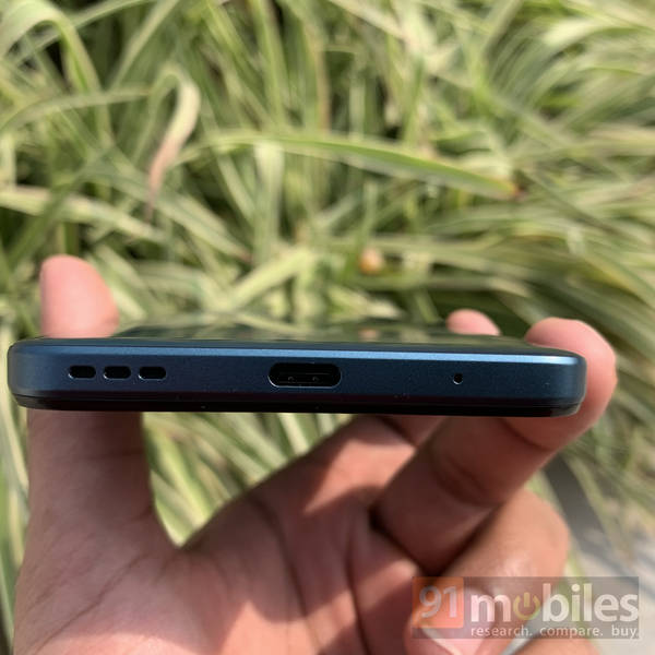 - The toggles for power and volume are on the right spine of the phone. While the power toggle button was within my thumb’s reach, I had to resort to finger gymnastics to press the volume rocker at times. It would have been better had the buttons been placed slightly lower. Moving on, the phone ships with a USB Type-C port for charging and data transfer on the bottom edge alongside the speaker grille and a microphone. The top edge comes with a 3.5mm headphone jack. On the left edge, the Moto E13 sports a SIM ejector tray, which has a dedicated slot for a microSD card. The handset is also IP52-rated against minor splashes and dust.