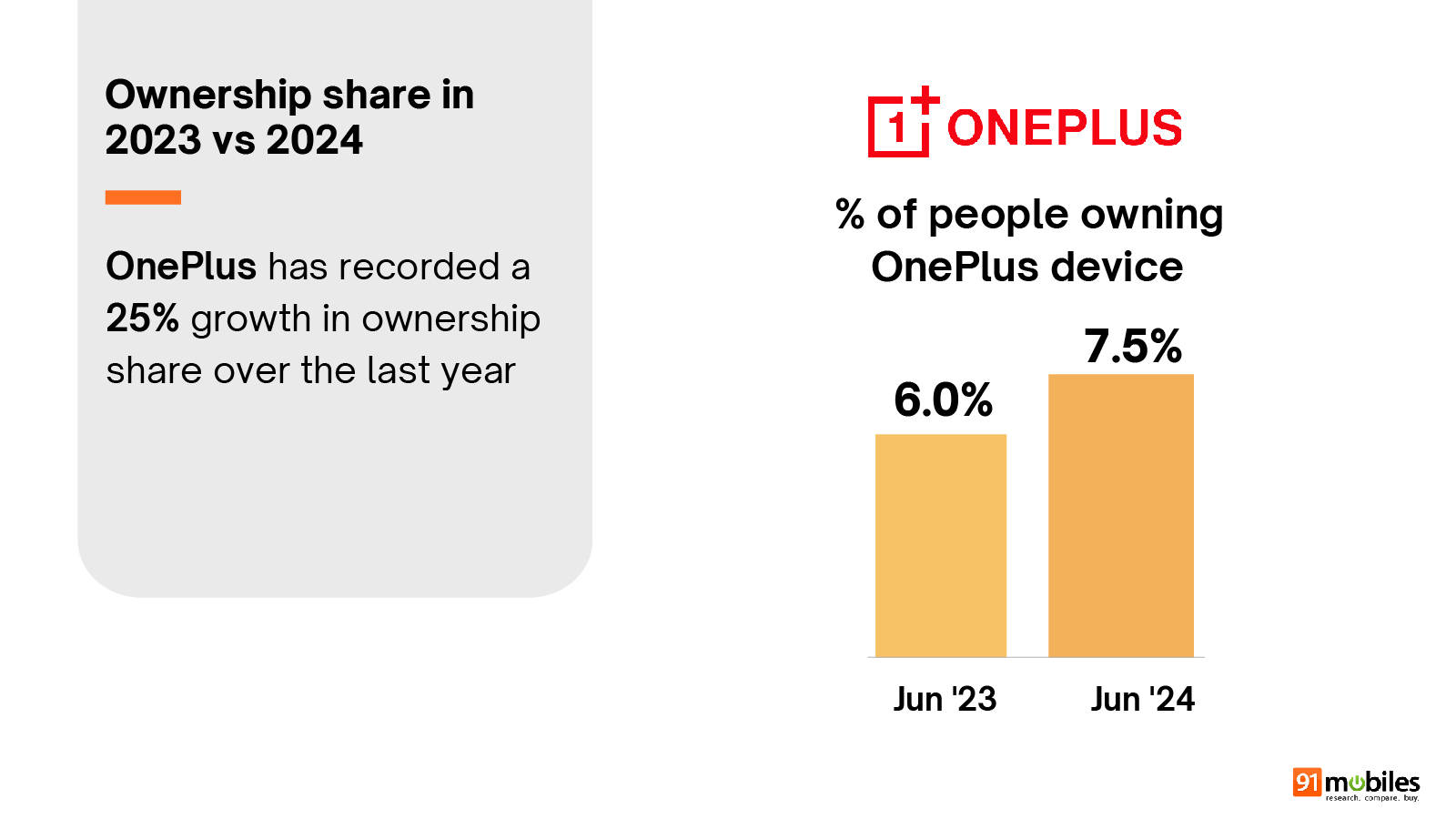 - As per 91mobiles’ Smartphone Buyer Insights Survey 2024, OnePlus currently ranks sixth in smartphone ownership among the survey respondents.