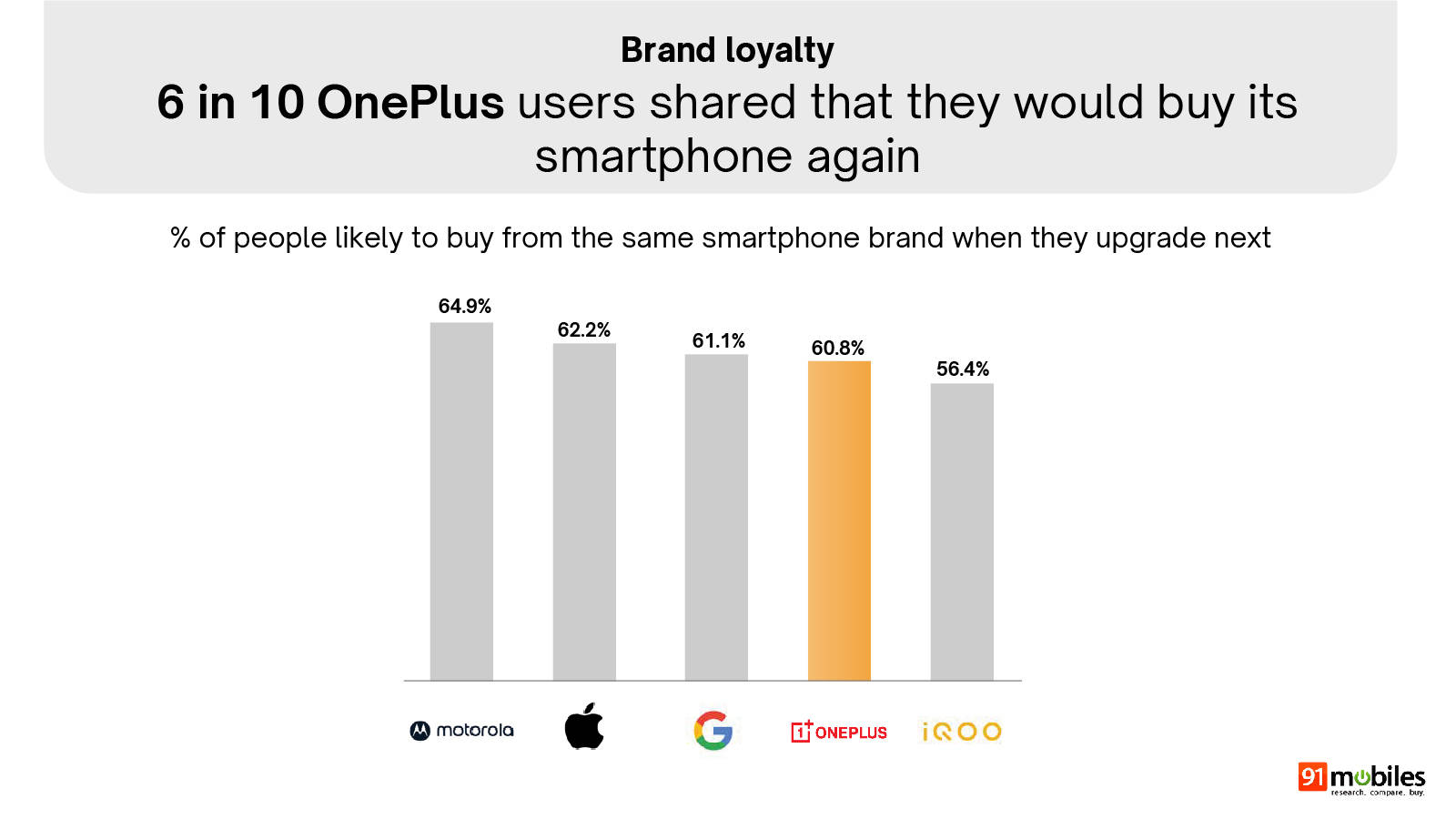 - 6 in 10 OnePlus users claimed they would purchase a smartphone from the same brand when the right time comes.