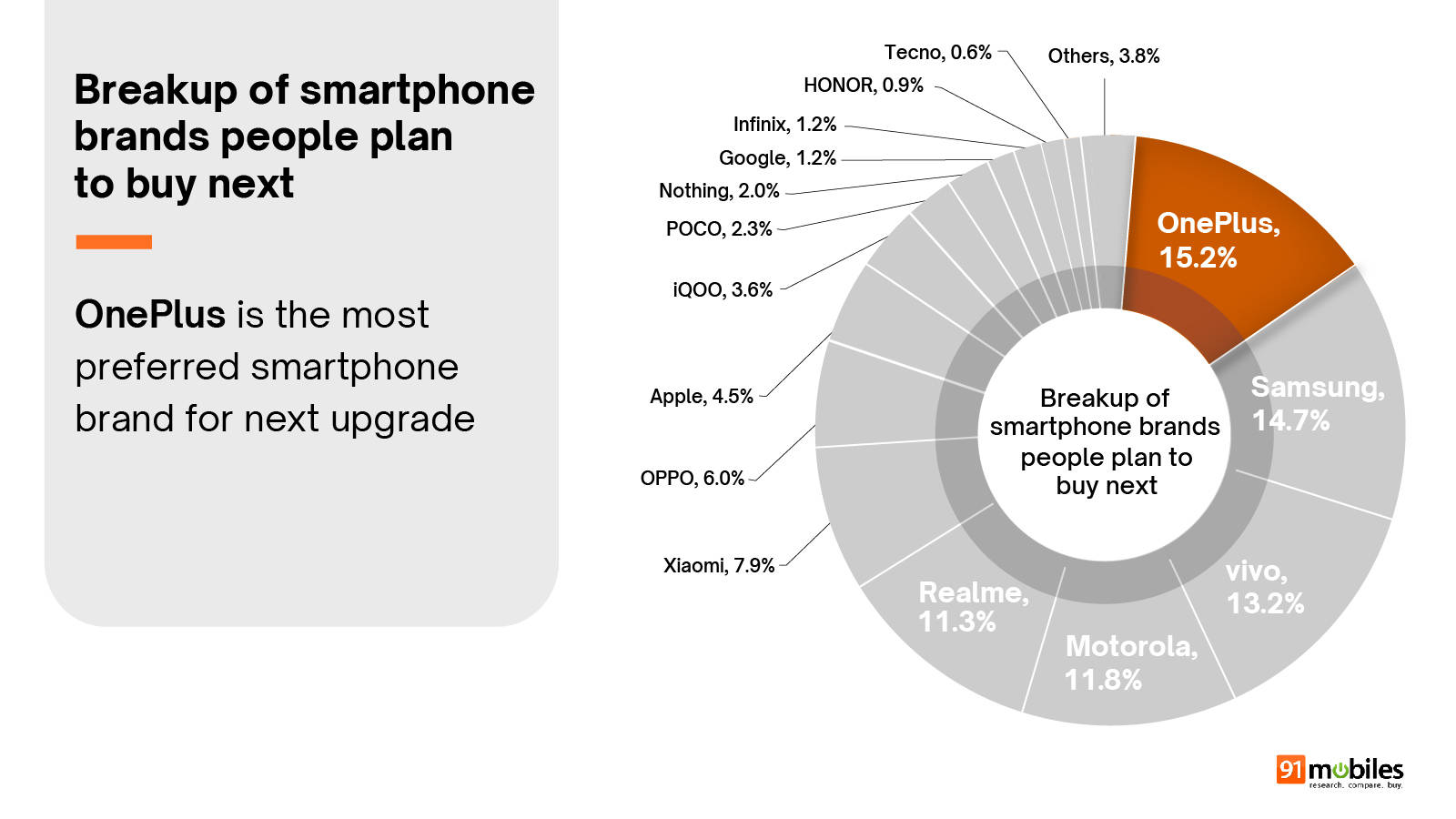 OnePlus is the most preferred brand for people looking to buy their next smartphone: 91mobiles Smartphone Buyer Insights Survey 2024