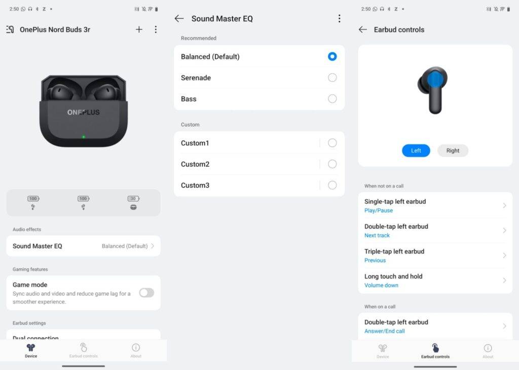That said, the app allows users to customise EQ settings by choosing between the three presets or creating a custom one. The Buds 3r supports as many as three custom presets, taking the overall EQ tally to six.