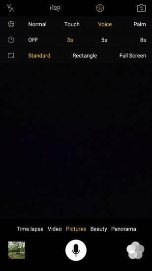 The camera app is neatly laid out, and when the phone is held vertically, you’ll see various shooting options listed at the bottom. Apart from photos and videos, these include a beauty mode, panorama and time lapse video. The flash controls, HDR settings, a combo setting for shooting, and toggle for the front camera are present on top. The combo setting we allude to is interesting, as it gives you access to a time, aspect ratio and shooting options like normal, touch, voice and palm. Pictures can be clicked depending upon the option selected – the voice option for example, triggers the shutter (with a 3-second timer) when you utter the word ‘cheese’. The palm option shoots an image when the camera detects an open palm.