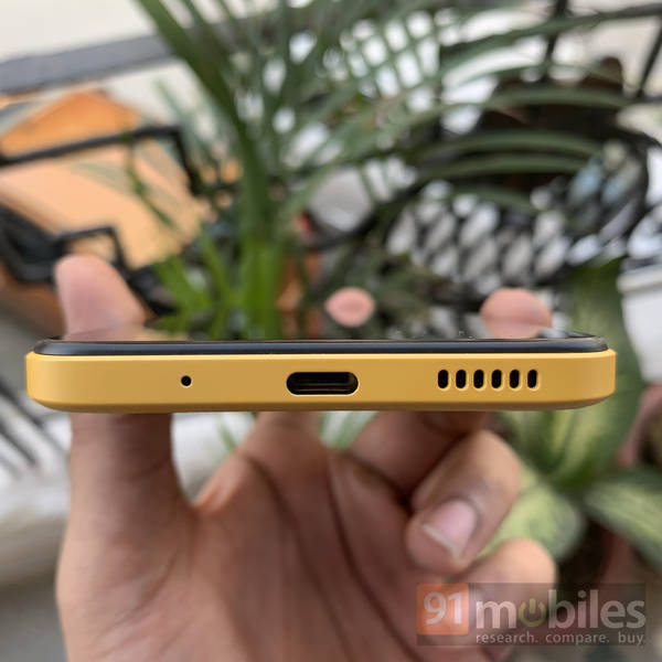 - The fingerprint scanner – which is on the right spine of the POCO M5, alongside the volume button – also doubles up as a power button. The left fascia has a SIM tray, which has a dedicated slot for a microSD card along with dual SIM card slots. As for the I/O, the USB Type-C port is sandwiched in between the microphone and speaker grille at the bottom edge, while the 3.5mm headphone jack can be found at the top edge alongside an IR blaster. Overall, the POCO M5 looks quite good, and despite its plastic build, the device feels solid and sturdy. The handset is even IP52 splash-resistant certified. That said, I wish the phone was slightly lightweight. As things stand, the device tips the scales at 201 grams, which could be construed as hefty, by many.