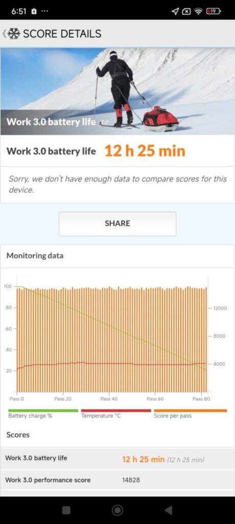 On the PC Mark battery test, the POCO X6 Pro achieved a score of 12 hours and 25 minutes.