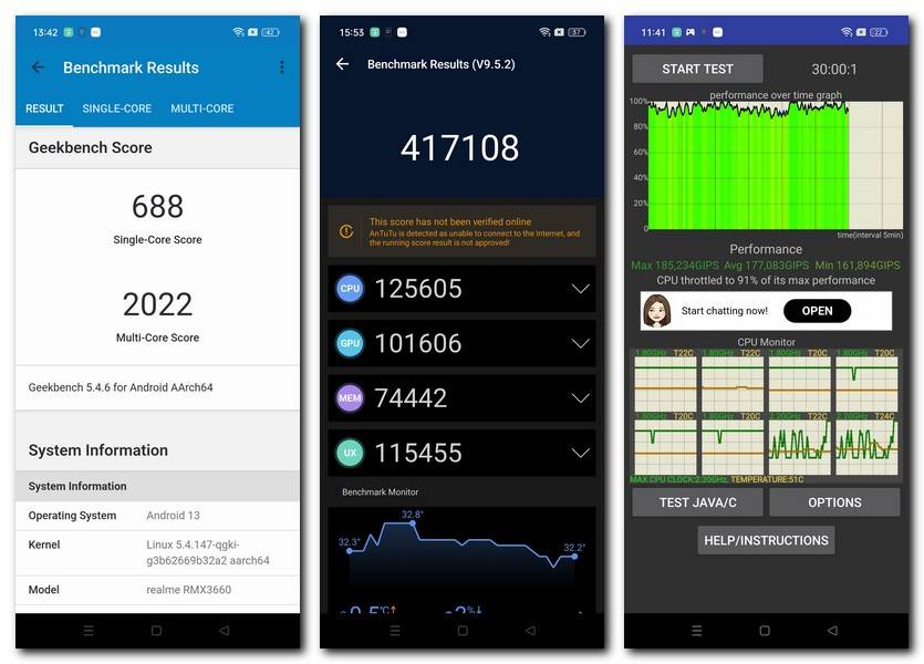 - Powering the Realme 10 Pro is the Qualcomm Snapdragon 695 SoC, which can be considered a veritable performance workhorse in this segment. The benchmark numbers surrounding the device are pretty good for the price. On Antutu the device scores 417,108 while Geekbench 5’s multi-core result is shown to be 2,022.