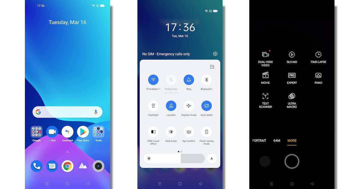 There’s a square-shaped camera module on the back, which gives it a slightly unique look. The power button and volume keys are present on the right side of the frame. You also get a Type-C port, a 3.5mm headphone jack, and a speaker grille on the bottom of the frame. The SIM tray can hold two nano-SIM cards and a microSD card. The phone weighs around 177 grams making it fairly lightweight and easy to hold for a long period of time.