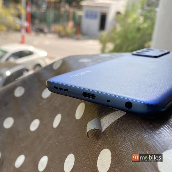 Right off the bat, I noticed that the Realme 9 5G SE has a bit of heft to it and the device felt quite heavy in my hand. In fact, weighing in at around 200g, the handset is among the chunkier phones in the segment, and that’s despite the device utilising a unibody polycarbonate build. Thankfully, unlike the herd of glossy-back phones, the Realme 9 5G SE makes use of a matte finish on the back, which will not go unappreciated by buyers. I was sent the Azure Glow variant for review which comprises a single deep blue colour scheme running across the length and the width of the chassis. In fact, the colour seeps into the camera housing as well, ensuring continuity in the design of the phone. And, since we’re on the subject of the phone’s camera module, you should know that the optics are positioned towards the top-left of the set in a typical inverted L shape. As for the rest of the I/O, the device offers a side-mounted fingerprint sensor that doubles up as the power button. The unit ships with a volume rocker on the opposite fascia, and touts a USB Type-C port, a 3.5mm headphone jack, and a speaker grille at the bottom. On the whole, the Realme 9 SE 5G offers a tasteful design, however, I wish the company would’ve included stereo speakers with the phone. As things stand, the device comes across as the “odd one out”, given how most competing phones provide a better audio setup.