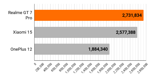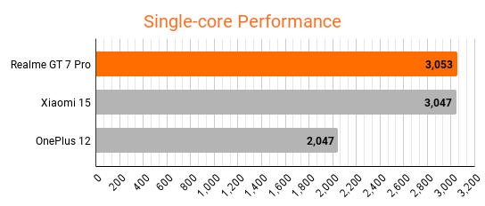 The Realme GT 7 Pro stands tall for its performance, which has been taken care of by the Qualcomm Snapdragon 8 Elite chipset paired with up to 12GB of RAM and 256GB storage on board. In our synthetic benchmarks, it achieves higher scores than the A18 Pro-powered iPhone 16 Pro. Based on numbers, the GT 7 Pro is a few inches taller than the China-specific Xiaomi 15, which draws power from the same Qualcomm SoC.