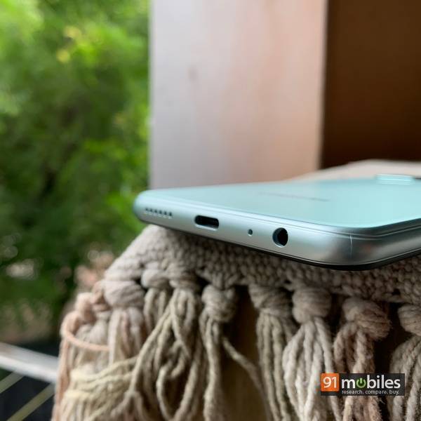 The Galaxy A22 seems to have taken quite a few design elements from the more budget-focused M series. It has the same rigid, polycarbonate construction which gives it a firm build and a zero flex chassis. Samsung has implemented a matte finish over the back to give the device more zeal, and avoid smudges or fingerprints. The polished frame and rounded edges feel good in my hand, although it is slightly offset by the weight of the device. The square camera housing protrudes slightly from the back, giving the A22 a bit of a wobble on a flat surface. As for the rest, the power button has a built-in fingerprint sensor, and the volume rocker conforms to Samsung’s usual standard of high placement on the side, making it hard to reach. On the bottom, you get a rare commodity in the form of a 3.5mm headphone jack which is accompanied by a USB C port and a speaker grille.