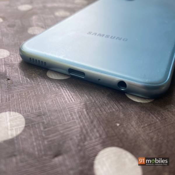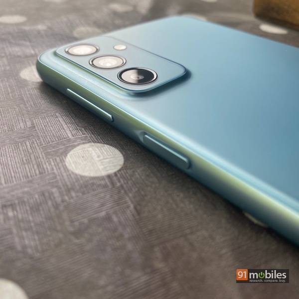 I really love the new matte-finish colour scheme being employed by OEMs in the affordable range. It provides a premium in-hand feel to the device while looking great. The Galaxy F23’s Aqua Blue variant I have received has a gorgeous light blue coating that shimmers under the light and mostly impedes fingerprints. As for the triple-camera housing on the top-right, it is slightly raised from the chassis and retains the same finish. The phone definitely does feel a bit heavy in the hand which is surprising since the weight doesn’t even cross 200g although the thickness of 8.4mm is a bit more than I would’ve liked. The bottom edge holds the 3.5mm headphone jack, a USB C port, and a speaker grille. Unfortunately, the earpiece up top does not marry the bottom-firing speaker for stereo sound, a feature almost all OEMs are providing at this point. Lastly, the power button on the side doubles up as the fingerprint sensor while the volume rocker, with a regular tactile feel, is present just above it.
