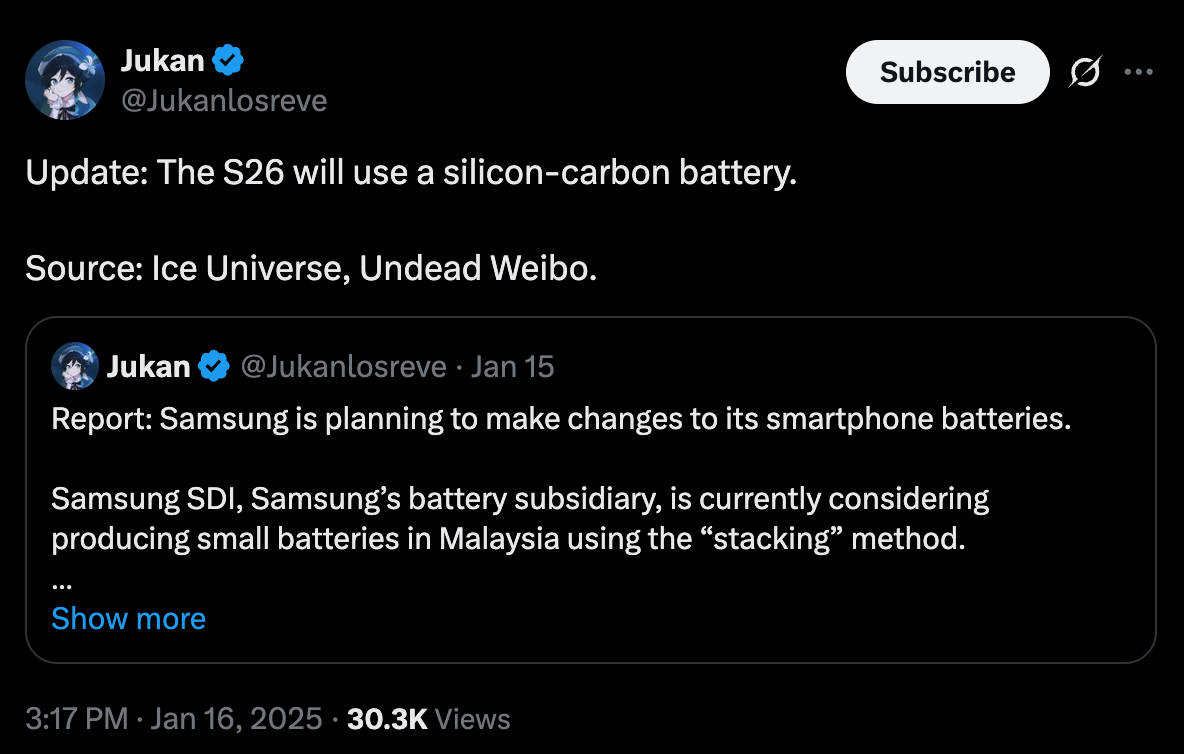 Tipster Digital Chat Station claimed battery sizes could differ by model. Galaxy Club reports that the S26 Pro may pack a 4,300mAh battery, the Edge a 4,200mAh unit, and the Ultra a 5,000mAh cell. Stacked battery technology and silicon-carbon chemistry, rumoured since January, may appear to boost energy density without adding bulk. In our Galaxy S25 review, we were slightly dejected by the absence of this tech. We said, “Battery life wasn’t Galaxy S24’s biggest strength, and the story remains almost similar this time. The latest carbon-silicon technology allows for higher capacity without increasing the size, but Samsung has chosen to stick with traditional lithium-ion batteries instead.”