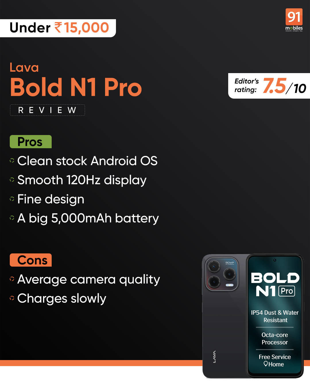 Verdict: The Lava Bold N1 Pro covers the basics for an entry-level smartphone. The handset is designed well, feels smooth thanks to a 120Hz display and bloat-free Android, and lasts decently long on a single charge due to its big battery. Most other aspects are quite basic overall, the cameras are so-so, and the charging speeds are underwhelming. However, if you’re on the lookout for a good-looking phone with decent performance, a clean UI, and long battery life on a budget, it’s worth considering.