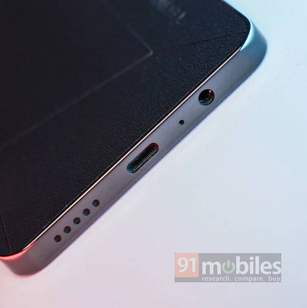 - The handset sports flat edges instead of curved ones, which makes the device comfortable to wield. The right spine of the phone is home to a volume rocker and power button, while at the bottom it has a USB Type-C port for charging, a 3.5mm headphone jack, and a speaker grille. There is another speaker on the top edge for a stereo sound output. The SIM-ejector tray, which has a dedicated slot for a microSD card, can be found on the left edge.