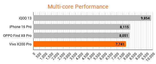 While the iPhone 16 Pro performed better in single-core tests, the iQOO 13 was ahead in multi-core, suggesting it can handle more demanding applications that require more cores out of the processor efficiently. The Vivo X200 Pro didn’t do as well, but the difference in scores are almost negligible.