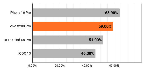 | Gaming (Temperature) | Rank 1 – iPhone 16 Pro Rank 2 – iQOO 13 Rank 3 – Vivo X200 Pro |