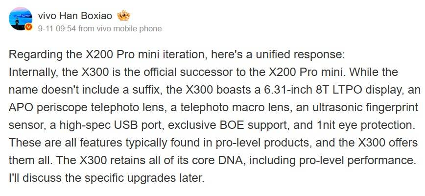 With a 6.31-inch screen, the X300 is now Vivo’s compact flagship. The X200 features a 6.67-inch display. Vivo, on Weibo, clarified that the X300 is the spiritual successor of the X200 Pro mini, as it comes with all the ‘Pro’ features.