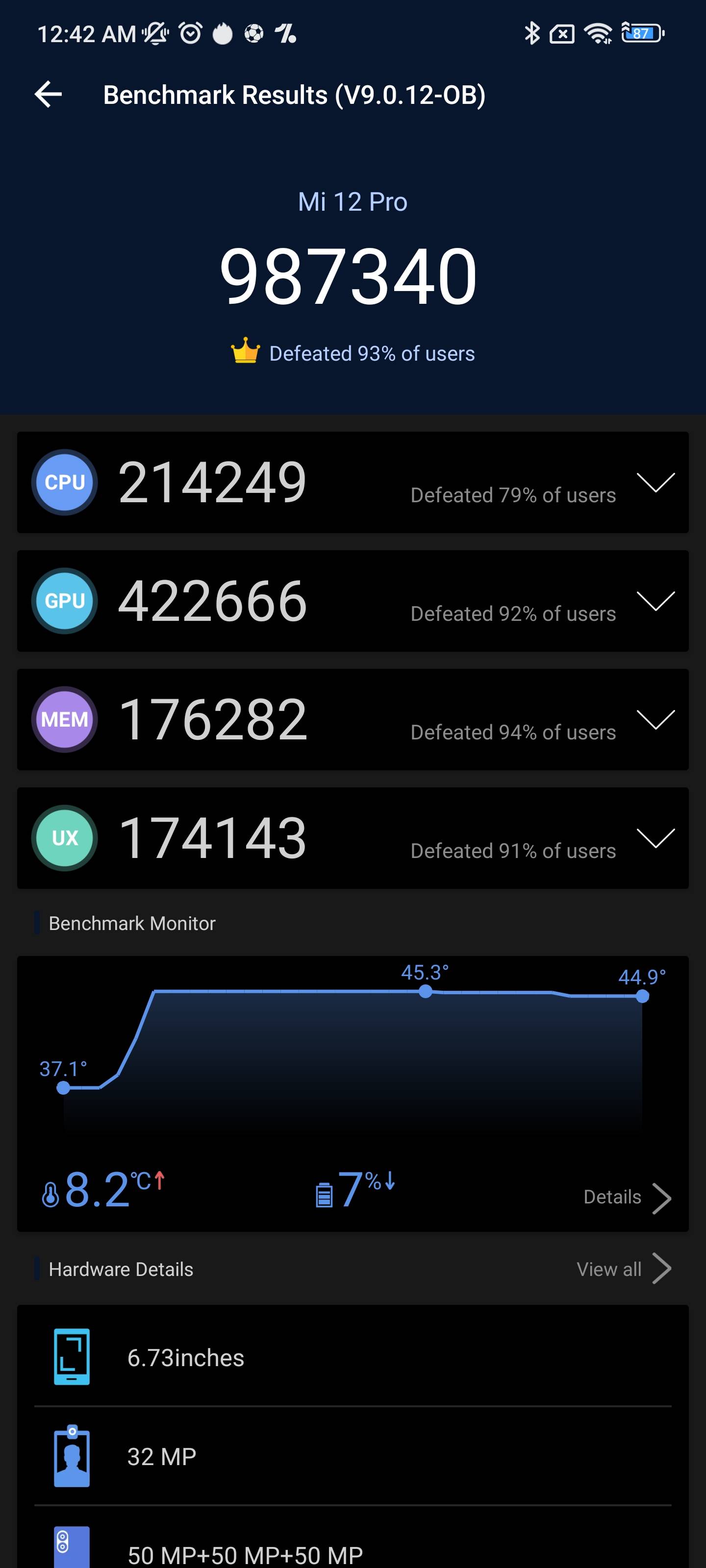 That said, I noticed that the phone ran a tad warmer than most Snap 8 Gen 1 devices. Now, Xiaomi claims the smartphone ships with a dedicated vapour chamber for cooling, however, the device temps skyrocketed the minute I ran a resource-hungry game like BGMI or used the camera app for a bit. Clearly, the smartphone’s cooling mechanism isn’t working as advertised, which is probably why the Xiaomi 12 Pro throttled by quite some margin in the CPU throttling test too. To wit, the handset throttled to 60 percent of its peak performance, and the device netted 47.7 percent stability in 3D Mark’s Wildlife Extreme test as well. In contrast, the Samsung Galaxy S22 Ultra dipped to 68 percent of its peak performance in the throttling test and averaged 60.8 percent stability across 20 loops in 3D Mark’s Wildlife Extreme Stress test. All things considered, the Xiaomi 12 Pro is a capable performer although leveraging the handset’s horsepower for longer periods of time could be iffy.