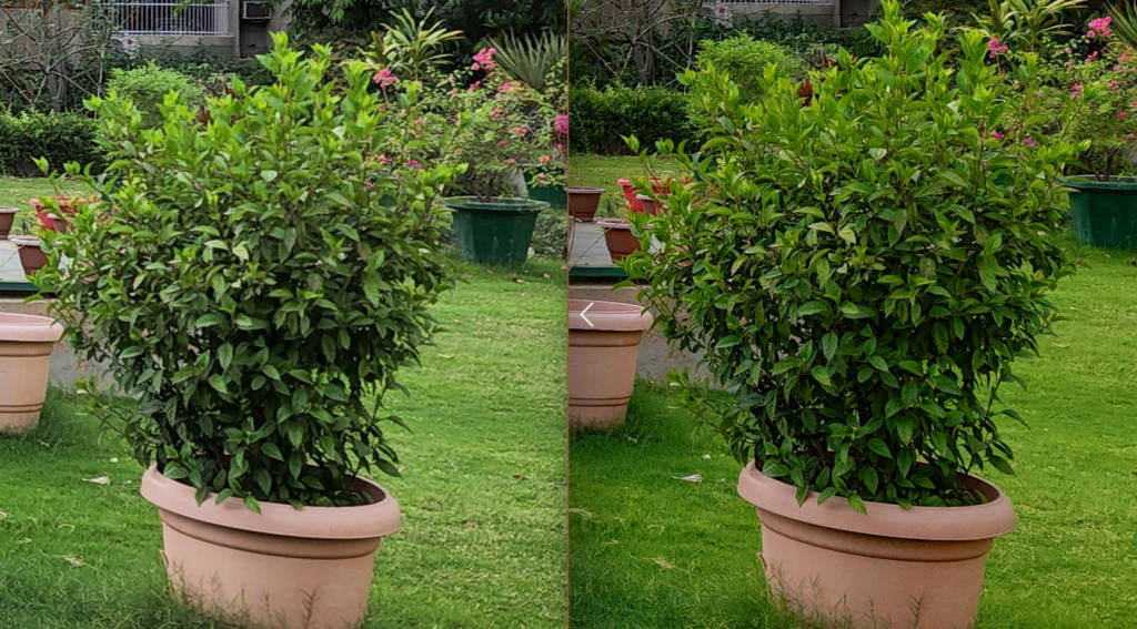 Here, the image on the right has been shot from the Xiaomi 12 Pro, whereas the one on the left was shot with the Samsung Galaxy S22 Ultra. Now, you’d be wise to assume that the shot from Samsung’s latest is truer to life. In fact, the colour of the leaves, as well as that of the flower pots appears more saturated in the 12 Pro’s composition.