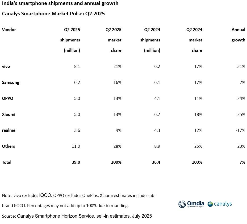 Smartprix’s report on the cancellation of the Xiaomi 15 Civi for India comes amid Xiaomi’s declining market share in the country. A recent report by research firm Canalys for the quarter ending in June(Q2) showed that Xiaomi shipped 5 million smartphone units for a 13 per cent market share. In comparison to Q2 2024, Xiaomi shipped 6.7 million units for an 18 per cent market share, confirming a year-on-year decline. The report added that Q2 sales were boosted thanks to the budget Redmi 14C 5G (Rs 9,999) and the new Champagne Gold Redmi Note 14 series. These numbers indicate that Xiaomi continues to flourish in the budget and mid-range segment.