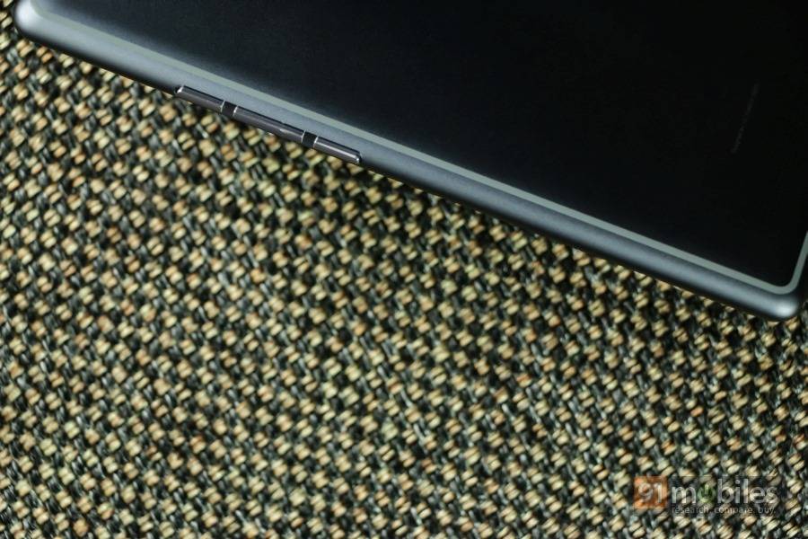 The headset socket and micro-USB port are placed dead centre on the top and bottom respectively. The right holds two separate volume keys, with the power key placed in their midst. A large ejectable tray on the left spine accepts a micro-SIM and either a nano-SIM or a microSD card.