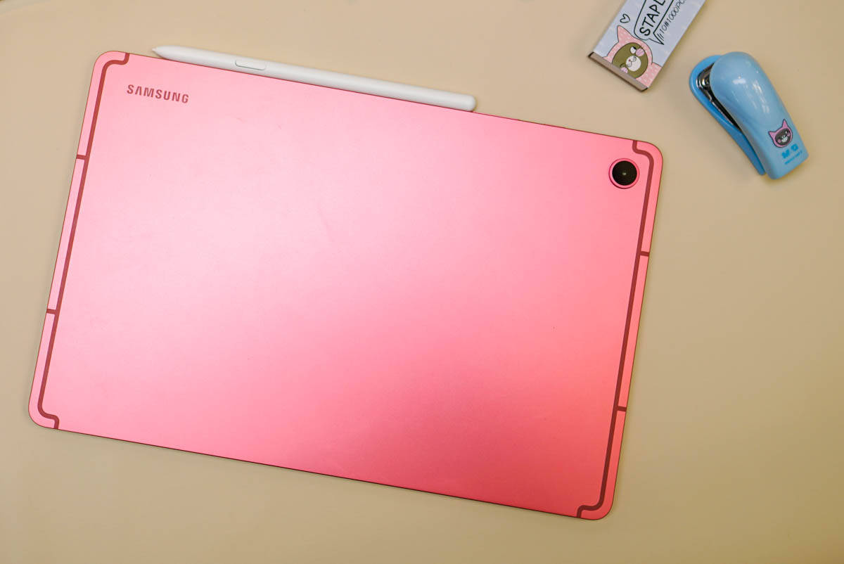 Dengan frame dan punggung berbahan logam aluminium, perangkat ini terasa solid dalam genggaman. Samsung menyediakan opsi warna Coral Red yang kelir merahnya tampak menonjol, serta Gray yang lebih understated dan low-profile.