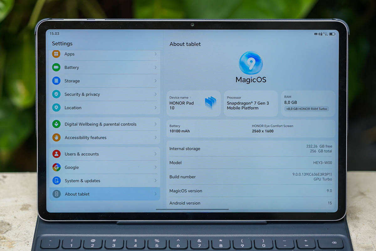 Untuk spesifikasinya, Honor Pad 10 tergolong papan tengah dengan chipset Snapdragon 7 Gen 3, yang dipadukan dengan konfigurasi memori 8 GB/ 256 GB dan baterai 10.100 mAh berikut dukungan fast charging 35 watt.
