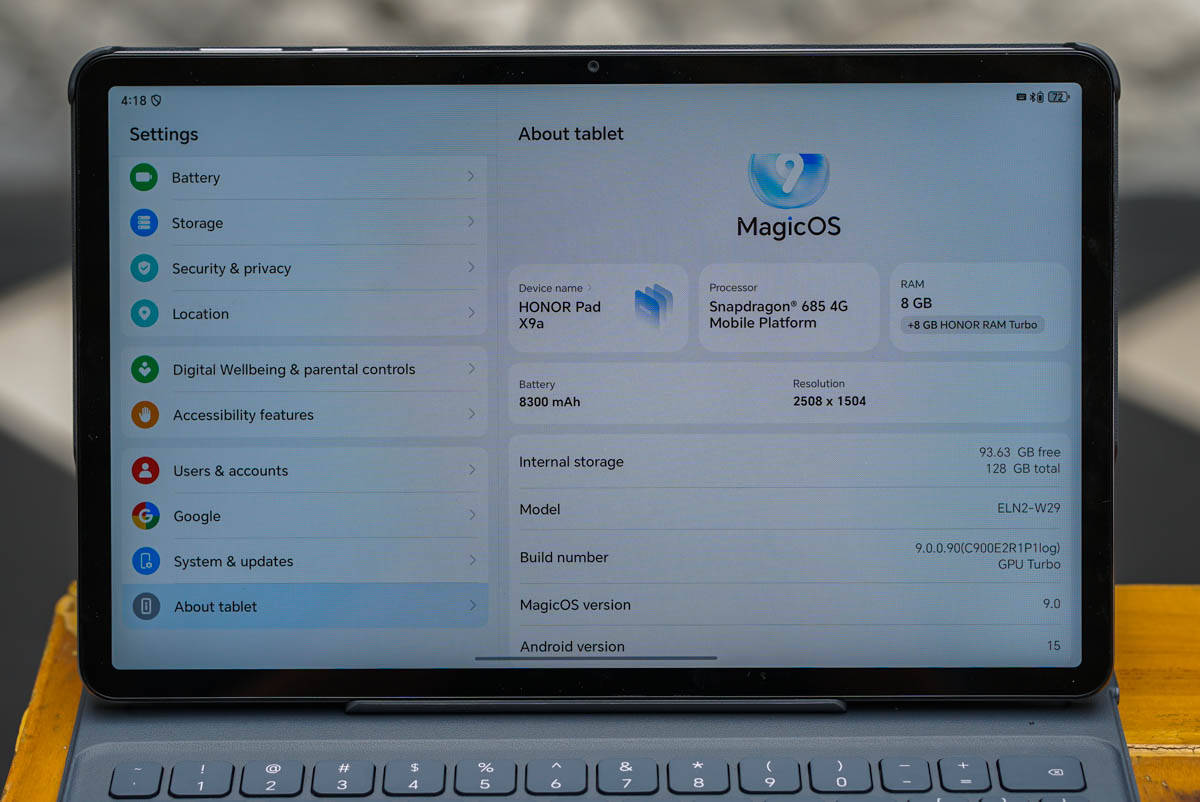 Dapur pacu Honor Pad X9a mengandalkan Snapdragon 685 yang sebenarnya merupakan chipset lawas untuk perangkat entry-level, tapi bisa dimaklumi mengingat harganya yang ramah kantong. Chip tersebut dipadankan dengan memori 8 GB/ 128 GB dan baterai 8.300 mAh yang mendukung fast charging 35 watt.