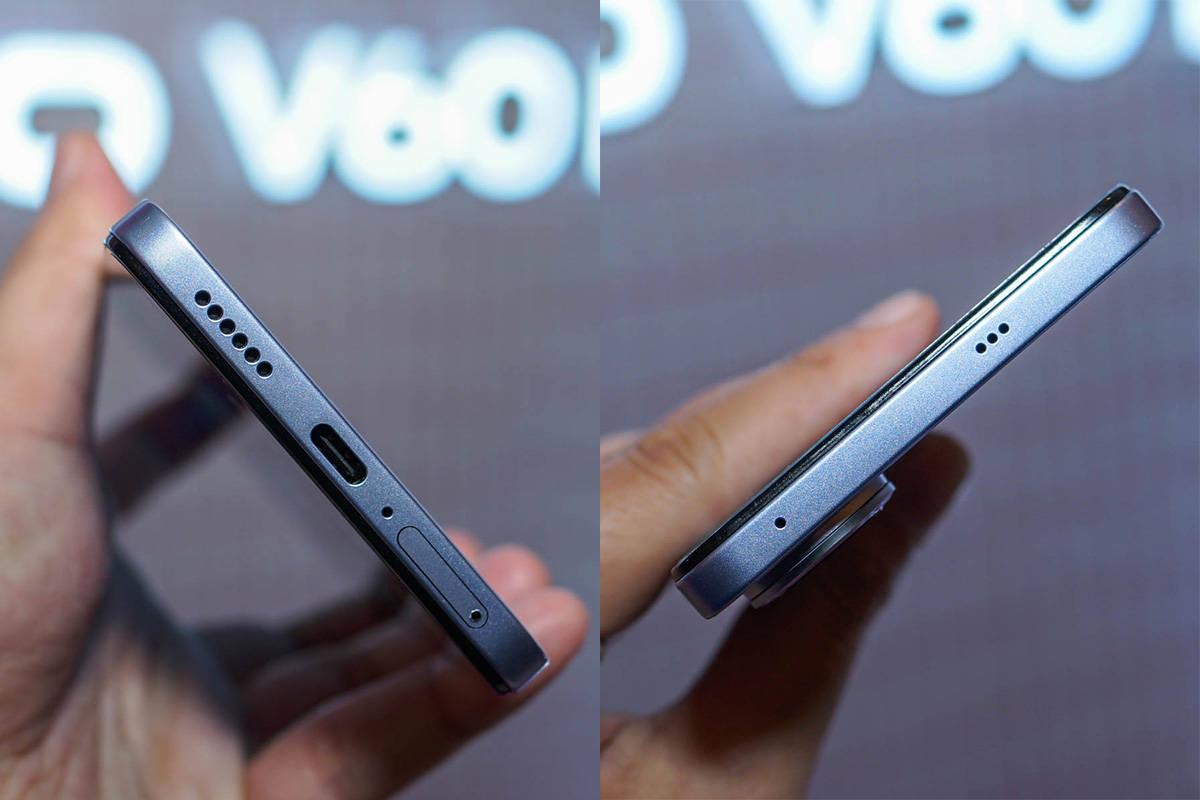 Keduanya terasa nyaman ketika digenggam karena sudut-sudut frame yang membulat, di samping tak terlalu berat. Sebanyak tiga opsi warna disediakan untuk Vivo V60 Lite 5G dan 4G, terdiri dari Vibing Blue, Vibing Pink, dan Vibing Black.