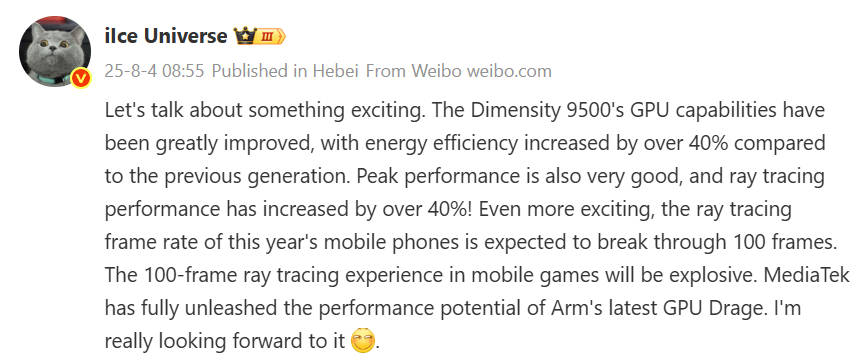- Dimensity 9500 kabarnya akan mampu meraih lebih dari 100 FPS saat menerapkan ray tracing. Dengan begini, pengguna tidak perlu mengorbankan kualitas grafis untuk meraih pengalaman bermain yang mulus.