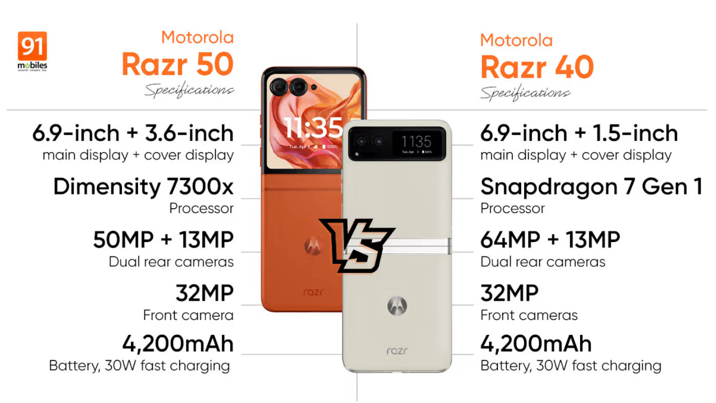 Motorola Razr 50 saat ini sudah tersedia di India, sebagai penerus Motorola Razr 40. Muncul dengan fitur AI terbaru, integrasi Gemini, desain baru dan menghadirkan peningkatan lain dari pendahulunya. Nah, pada artikel ini, kami akan membandingkan Motorola Razr 50 dengan Motorola Razr 40 untuk memastikan bahwa ponsel lipat Motorola terbaru ini layak dalam hal peningkatan yang ditawarkan.