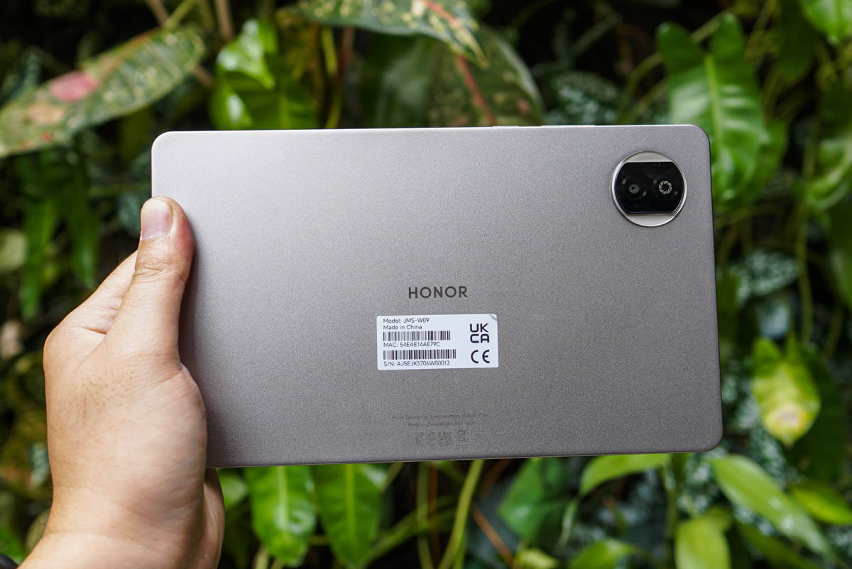 Karena ukurannya yang ringkas dan ringan, tablet ini tak lekas membuat pegal apabila digenggam dalam waktu lama. Mungkin itu pula alasan Honor memaketkan aksesori cover yang berfungsi ganda sebagai pegangan tangan dan stand. Jadi, penggunanya bisa menonton sambil menaruhnya di meja atau menggenggamnya sambil berbaring.