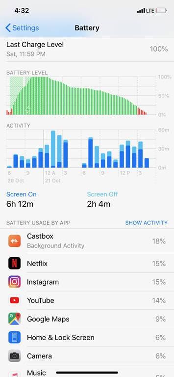 Meskipun saya adalah pengguna yang aktif, dengan penggunaan yang terdiri dari panggilan telepon, mengirim pesan, mendengarkan podcast, menonton video di YouTube dan Netflix, menggunakan GPS, dan tetap terhubung melalui Bluetooth ke Apple Watch Series 3 dan headphone Sony WH-1000XM3, ponsel ini mampu memberikan daya tahan baterai yang baik. Mungkin karena layarnya yang beresolusi lebih rendah, 720p, tetapi saya mendapatkan sekitar lima jam waktu penggunaan layar, yang setara dengan sebagian besar ponsel flagship. Dengan begitu, Anda tidak perlu mencari-cari pengisi daya sampai akhir hari.