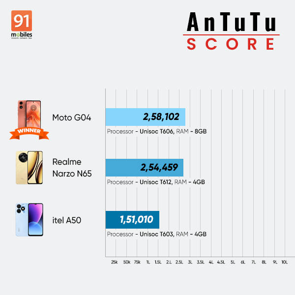 | Itel A50 | Moto G04 | Realme Narzo N63 | |