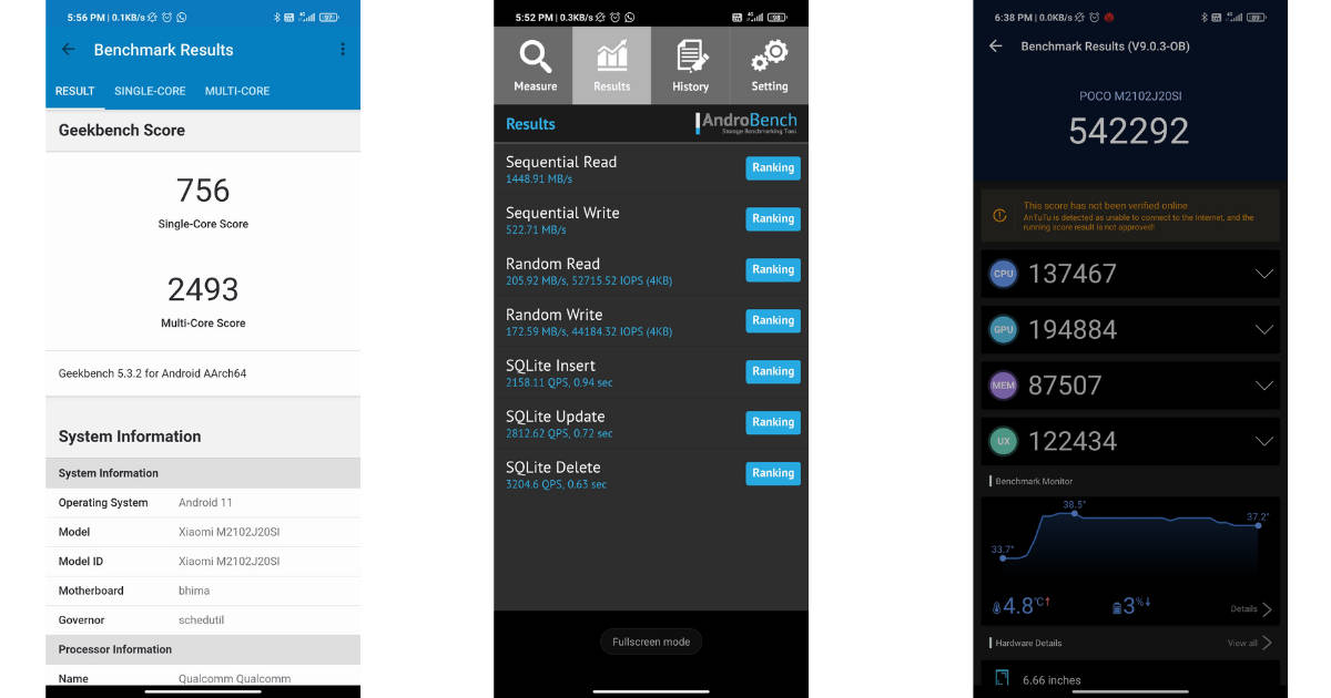 Seperti yang sudah dijelaskan sebelumnya, smartphone ini hadir dengan prosesor Qualcomm Snapdragon 860 yang menawarkan beberapa peningkatan kecil dari platform Snapdragon 855 Plus yang diumumkan beberapa waktu lalu. Unit ulasan saya dilengkapi dengan memori LPDDR4X 8GB dan penyimpanan UFS 3.1 internal yang dapat diperluas oleh pengguna – benar, X3 Pro dilengkapi dengan platform penyimpanan seluler tercepat saat ini dan hal ini terbukti – aplikasi dapat dijalankan dengan cepat, multi-tasking menjadi sangat mudah, dan saya tidak mengalami perlambatan terkait kinerja selama menggunakan ponsel ini. Memang, kecepatan baca dan tulis yang dihasilkan oleh perangkat ini bukanlah yang terbaik dan masih di bawah apa yang saya lihat pada perangkat berbasis UFS 3.1 lainnya. Walaupun demikian, saya akui, perangkat ini terasa sangat cepat untuk ponsel di bawah 4 juta rupiah rupiah.